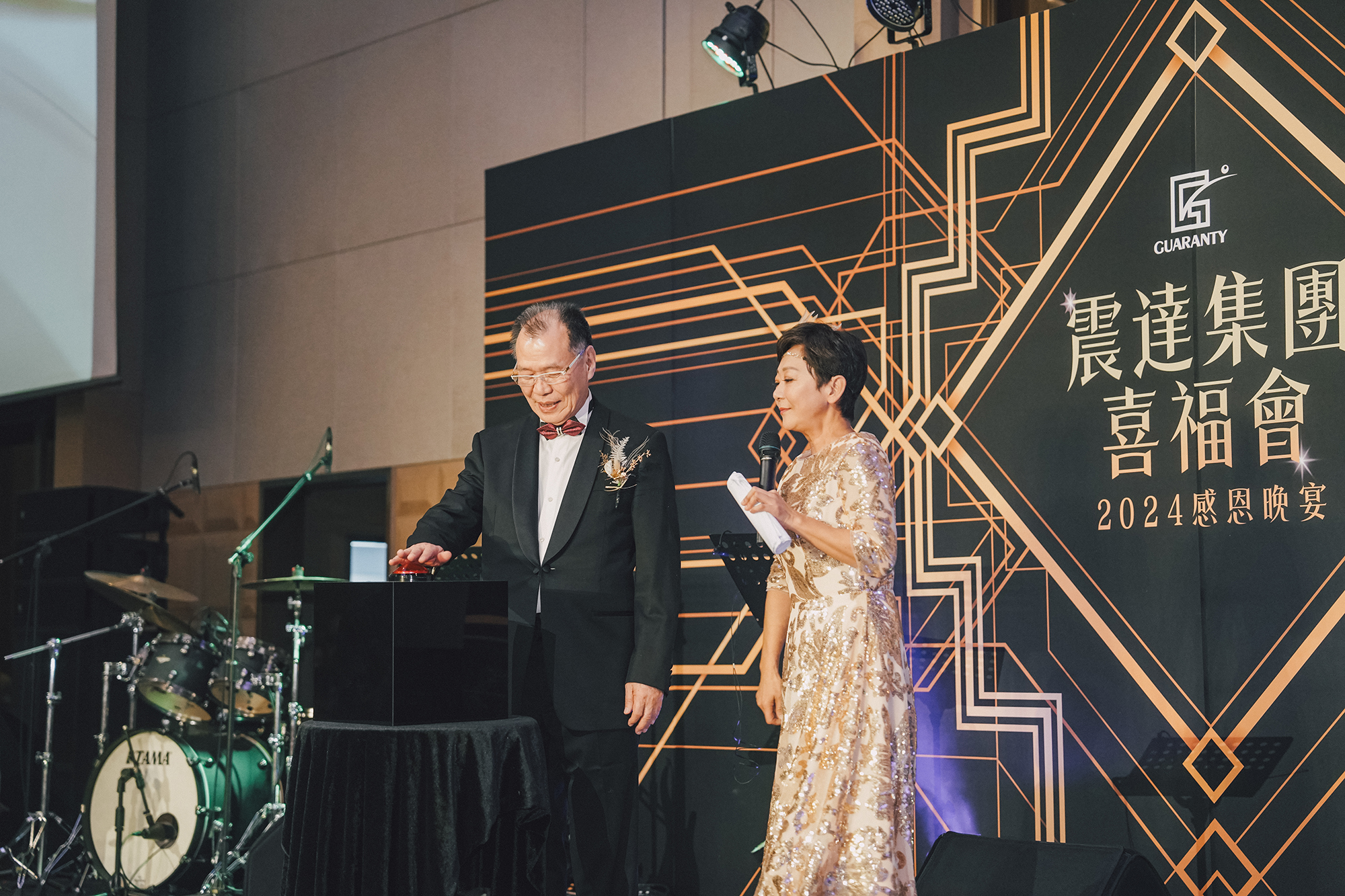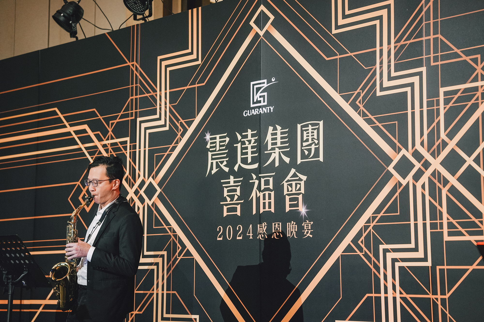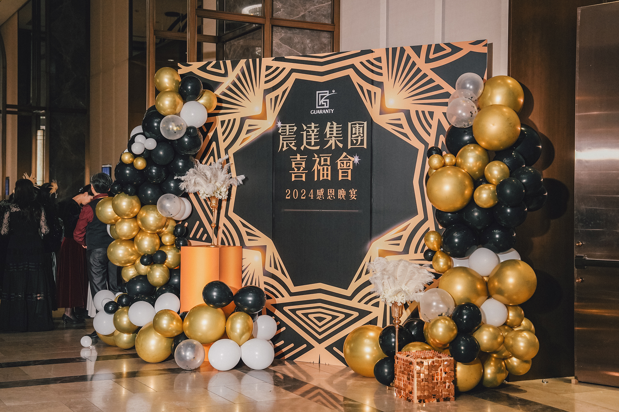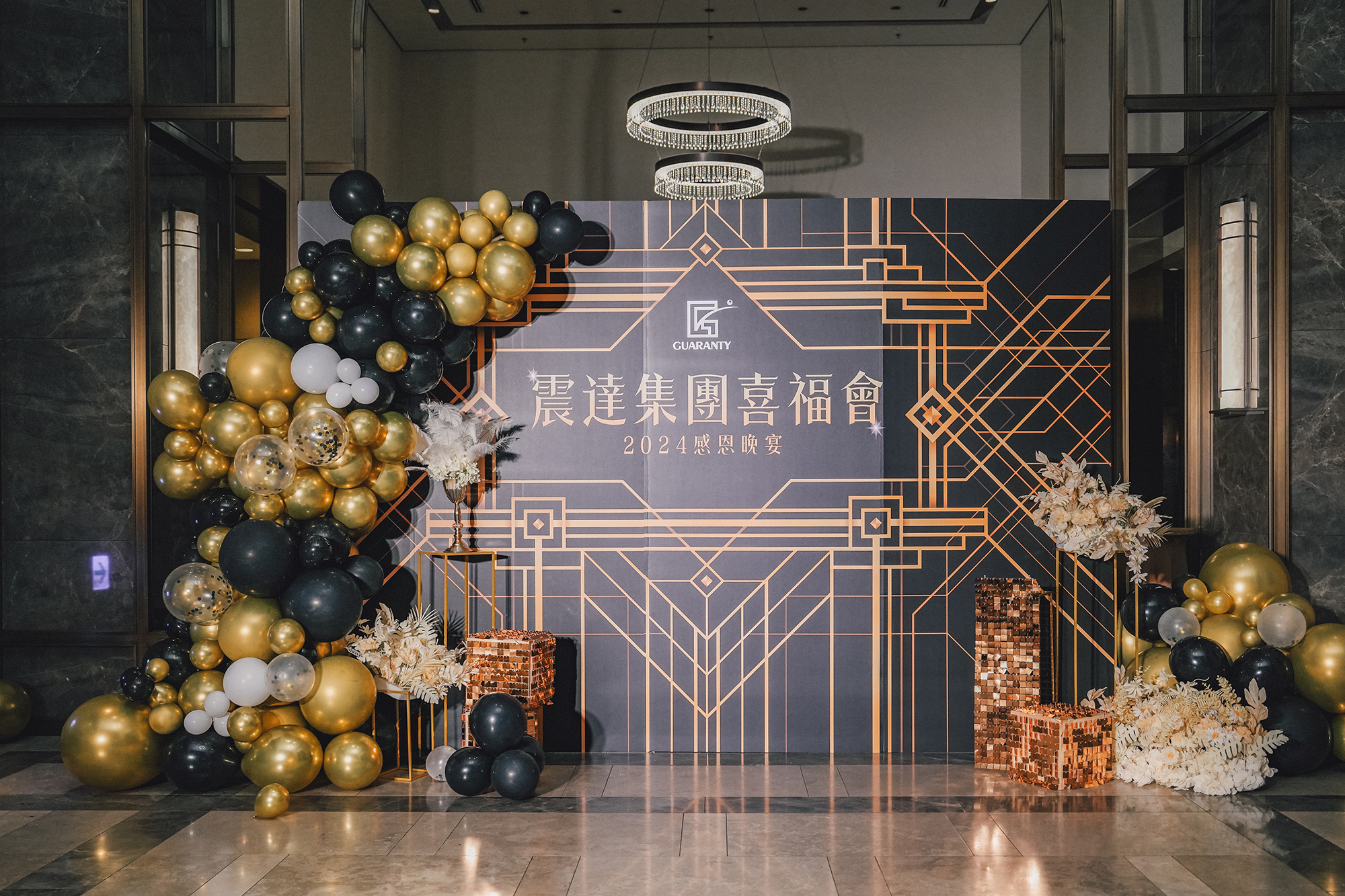 知名生技集團於年終歲末舉辦盛大尾牙活動,攜手節點娛樂打造以《The Great Gatsby》為主題的華麗復古派對,重現美國爵士年代的繁華與紙醉金迷。整體設計結合黑金色系視覺、現場演出與精緻細節,將員工帶入一場宛如電影般的夢幻舞會,展現企業品味與氣度。